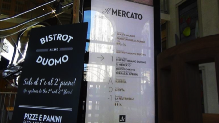 Anche la logistica ha bisogno di qualche correttivo: abbiamo notato infatti che i clienti non sono condotti a incontrare necessariamente questo spazio, causa la disposizione degli ingressi che non induce a un passaggio obbligato dal Mercato.