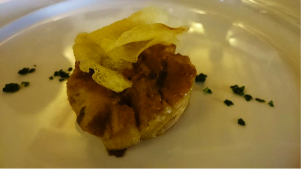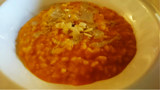 Il risotto di zucca con erborinato di capra e mandorle è apparso un azzardo che non ha pagato: il formaggio utilizzato è un detonatore di sapore, da usare con grande parsimonia e mano sicura, altrimenti rischia di sbilanciare il piatto coprendo gli altri sapori, esattamente come in questo caso. L’acidità spinta dell’erborinato è entrata in perniciosa pugna con la tenue dolcezza della zucca, trasformando un potenziale contrasto virtuoso in un conflitto vizioso.