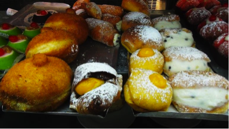 Per uscire dalla gradevole impasse, scegliamo la via della tradizione. La più classica delle prime colazioni in questo territorio vede come protagonista la graffa con la ricotta. Si tratta della versione locale del krapfen, dall’impasto però più soffice e gradevole, il quale viene spaccato per l’inserimento di una farcitura alla ricotta. Squisitezza imperdibile.