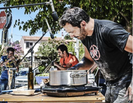 I cuochi sono invece contadini (autoproducono le materie prime nell’orto dietro al ristorante), a spreco zero (riciclano il cibo del giorno prima), cuochi che “sperimentano cucine comunitarie con contadini, allevatori, panificatori, artigiani, Gas, botteghe del commercio equo e solidale”.