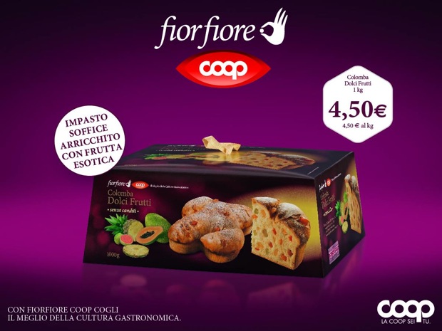 Partita in sordina ma con grande serietà, ha conquistato la vetta la Colomba Fiorfiore della Coop, sia con la ricetta classica che prevede un lento processo con oltre cinquanta ore di lavorazione, utilizzo del solo lievito madre e raffreddamento naturale, sia nella versione Dolci Frutti in cui la frutta (tropicale) non è candita ma soltanto disidratata.