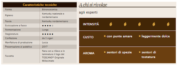 Si tratta infatti dell’edizione limitata di un sigaro che “utilizza tabacco Kentucky dell’annata 2015 e uno speciale processo di fermentazione che unisce due eccellenze italiane: il Toscano Originale e il vino rosso della zona di Montalcino”.