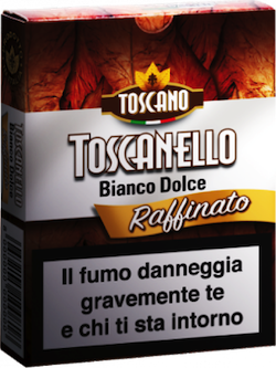 Sulle ali del successo del Toscanello Bianco Grappa, “il secondo sigaro aromatizzato più venduto in Italia”, viene rilasciato il nuovo Toscanello Bianco Dolce Raffinato, sigaro ammezzato in edizione limitata, con la variante delle punte addolcite.