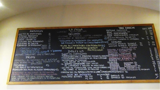 Già il nome del posto chiarisce tutto, poiché “in dialetto piemontese, la piola è l’osteria di paese, il luogo in cui si mangiano i piatti della tradizione e si bevono generosi bicchieri di vino del territorio”.