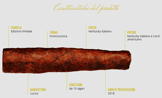 Nella comunicazione del prodotto viene evidenziata proprio “la capacità di miscelare assieme i tabacchi Kentucky italiani e nord americani”, in cui le due tipologie vengono accolte “in una fascia italiana della Toscana che contribuisce all’equilibrio aromatico complessivo del sigaro”.