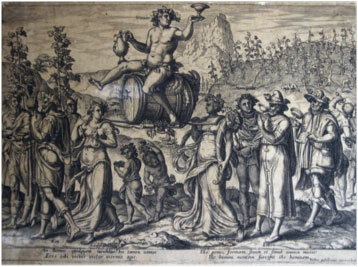 Questa parte del Museo viene così presentata: “le incisioni, databili dal XVI secolo, illustrano il mito di Dioniso lungo i secoli, la fortuna dell’allegoria della vite nella cristianità e, in alcuni casi, documentano le tecniche di vinificazione”.