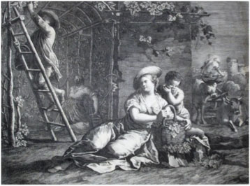 Descrizione: L’incisione fa parte della serie “Le quattro stagioni” incisa da Volpato all’epoca del suo soggiorno veneziano (1770 circa) e del felice sodalizio artistico con Francesco Maggiotto, responsabile dell’ideazione delle scene.