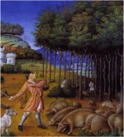 Diverse le caratteristiche delle popolazioni germaniche che nei primi secoli del Medioevo imposero, quasi inevitabilmente, i propri gusti in quei territori invasi e conquistati e che prima erano sotto il dominio romano. È in queste civiltà nordiche che il maiale assumeva un ruolo fondamentale, tanto che il valore di un appezzamento di bosco veniva valutato “ (…) ad saginandum porcos”, ovvero in base al quantitativo di bacche e frutti che produceva e che potevano sfamare un dato numero di maiali. Ma la sua importanza è confermata anche dalla mitologia nordica in cui assumeva una natura divina; nell’Edda di Snorri, per esempio, il maiale veniva bollito ogni giorno e la sera era di nuovo intero. Esso era anche, secondo altri miti, cibo e fonte di vita per i guerrieri. Tutti questi aspetti aiutano a comprendere l’enorme importanza che ebbe soprattutto sul piano culturale nei primi secoli del Medioevo.