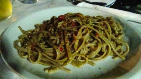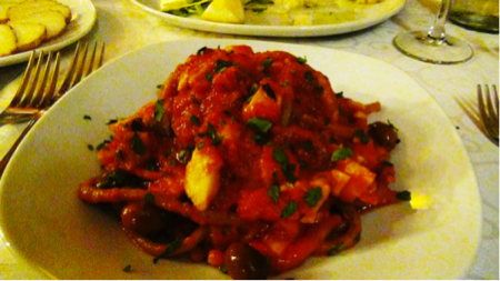 Altro piatto forte, Fileja alla Tropeana, consistente pasta tipica della provincia di Vibo Valentia, condita con un sugo alla Cipolla Rossa.