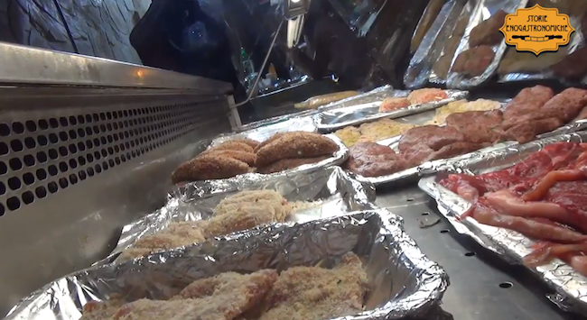 A essere privilegiata, la carne meno consueta, come quella di cavallo e d’asina. La carne è esposta in banchi refrigerati, a vista: il cliente scegli il pezzo che desidera e da lì il gestore lo prende e lo mette a cuocere.