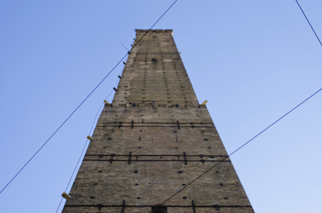 La Torre degli Asinelli si innalza solitaria nel cielo con i suoi 97 metri ed è percorribile grazie alla scalinata interna formata da quasi 500 scalini.