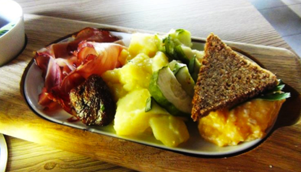 Imperdibile il tagliere in cui potere assaggiare il prosciutto della Foresta Nera, sorta di speck di grande raffinatezza e solubilità, appena fumé, servito con stuzzicanti intingoli, come crema piccante al formaggio, aringa alla tartare, polpette calde, insalata di patate, a 9,95 Euro.