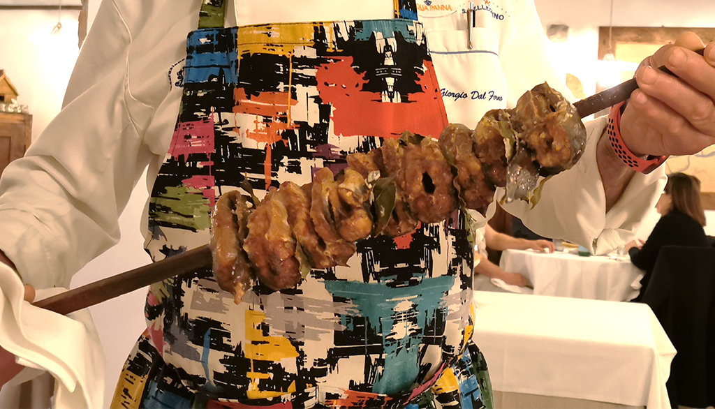 E’ tra i piatti più tipici della Laguna di Marano, ma richiede ore di preparazione e mille attenzioni artigianali, oltre a una sapienza maturata negli anni, come quella di questo chef che nel suo ristorante Ai Tre Canai lo prepara come una volta: è proprio lui a illustrarcene la preparazione. (Clicca per leggere l’articolo.)