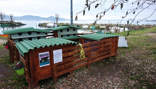 Passando per uno degli angoli più riparati e ma anche più suggestivi di Magione, a ridosso della riva che ospita un piccolo porticciolo su una delle sponde più belle del Trasimeno noti subito una struttura in maggior parte di legno che dà la sensazione di una curatissima dimora in miniatura: avvicinandosi si scopre che è un riparo per I Gatti di San Feliciano, colonia felina gestita da un gruppo di volontari insieme all’ASL.