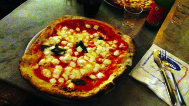 Ma se entri nel classico locale di via dei Tribunali 32, non c’è traccia di vanità mediatica: tutto è come una volta e il richiamo al passato è potente, come in quei cartelli che richiamano l’antica abitudine della “pizza oggi a otto”, grazie alla quale le persone in difficoltà potevano mangiarla subito e pagarla la settimana successiva.