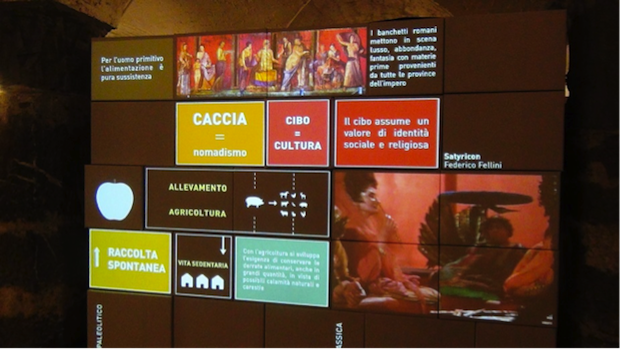 L’alimentazione come pura sussistenza, la caccia che è indice del nomadismo, la cottura del cibo che porta a distinguersi dagli (altri) animali, l’atto del mangiare che diventa aggregazione sociale, fino all’ingresso del cibo nei rituali delle credenze religiose: con l’essenzialità dell’infografica tratteggia la primordiale evoluzione dell’Uomo l’installazione site specific I tempi del cibo allestita a Palazzo Ducale a Genova da N!03.