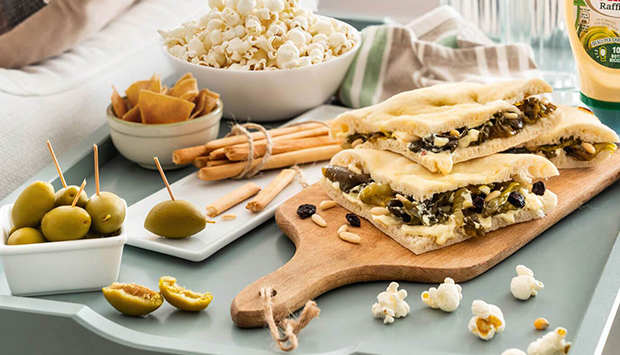 Accomodati davanti allo schermo, dal punto di vista gastronomico grazie alla box si può godere di fragrante Pizza&Pane all’olio evo…