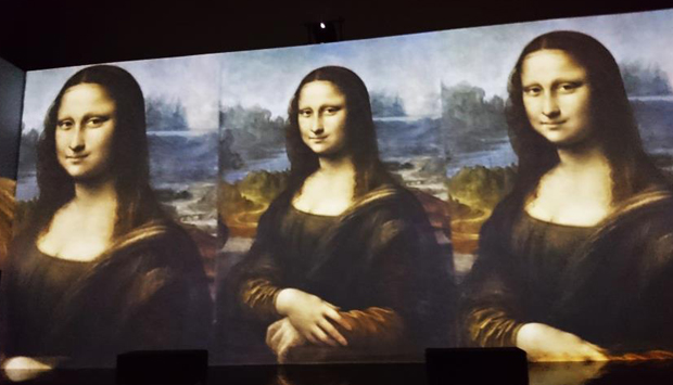 Così si entra nella sconfinata landa del talento artistico, attraverso la galleria con le riproduzioni dei quadri più celebri di Leonardo: inevitabile La Gioconda (1503-1506)…