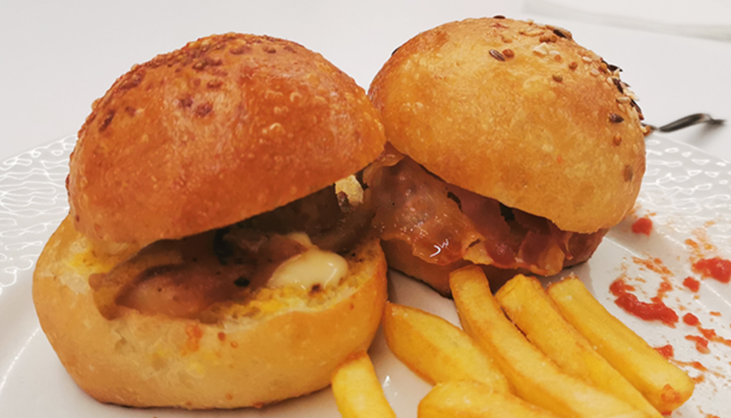 Una “mini-burger night” caratterizzata da questa specialità, scaturita dalla enorme capacità artigianale del pastry-chef Simone di miniaturizzare qualsiasi bontà, fossero anche sculture di zucchero: in questo caso si tratta di piccoli hamburger di ottima carne conditi in maniera varia e golosa ma, apprezzabilmente, senza eccessi nell’uso di salse, esaltando così contrasti tra dolce e salato di tipo naturale, grazie all’impiego di ingredienti come pancetta e pera.