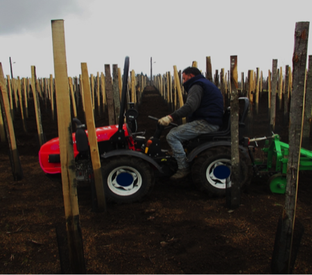 “Con questo piccolo trattore, opportunamente modificato e corredato da speciali accessori fatti costruire da un nostro fabbro, riusciamo a svolgere 80% del lavoro di aratura del vigneto nel periodo autunnale-primaverile: la macchina, oggetto di domanda di brevetto per invenzione industriale in quanto è stata valutata come innovativa, è un prototipo ancora in prova e da migliorare, che ci consente di svolgere efficacemente le nostre tradizionali lavorazioni del periodo che sono: la scalzatura, la concimazione e la rincalzatura”.