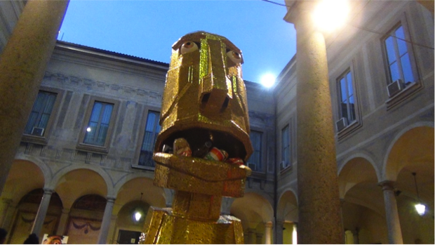 A sdrammatizzare i toni di alcune installazioni hanno contribuito degustazioni, concerti e laboratori, ma rimane vivida la visione dissacrante e a volte perfino apocalittica delle opere in mostra, come potrete verificare in questi appunti visivi.