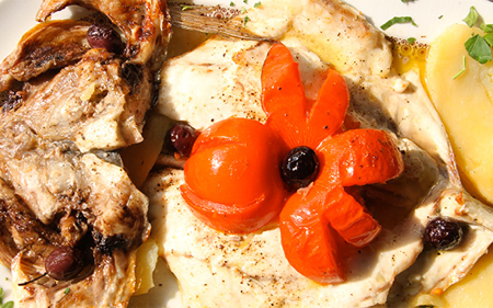 Dal menù della Ritrattoria, ristorante milanese di tradizione siciliana, ecco un secondo di pesce leggero e gustoso cotto al forno con patate e pomodorini.