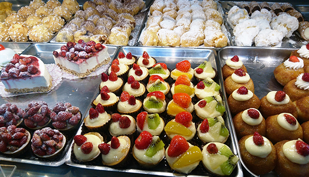 … e un ricco assortimento di paste tipiche dell’arta dolciaria locale…