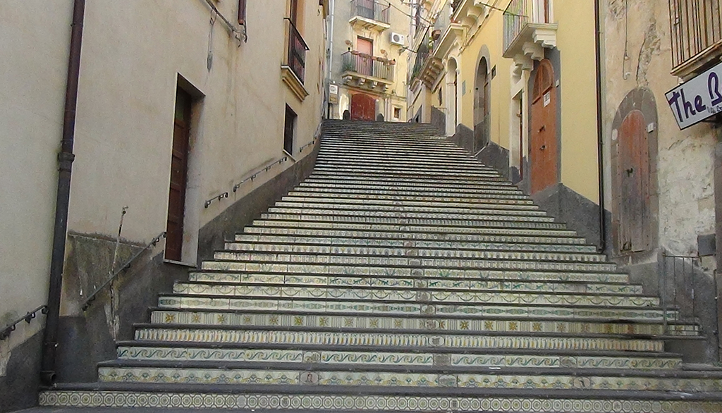 … ed emozionanti innesti artistici come una scalinata decorata con bellissimi inserti di ceramica tradizionale.