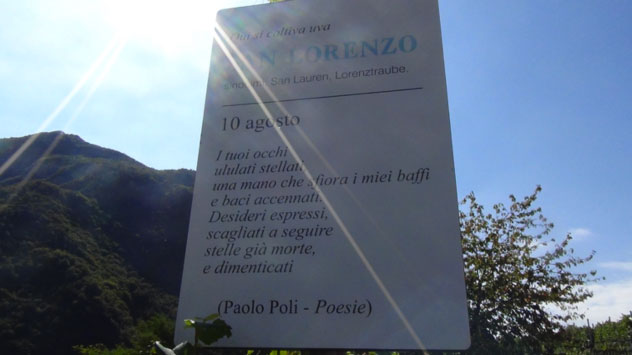 Le liriche in oggetto sono intitolate al 10 agosto, il giorno in cui si celebra la festa proprio di San Lorenzo, ricorrenza alla quale è legato il nome del vino.