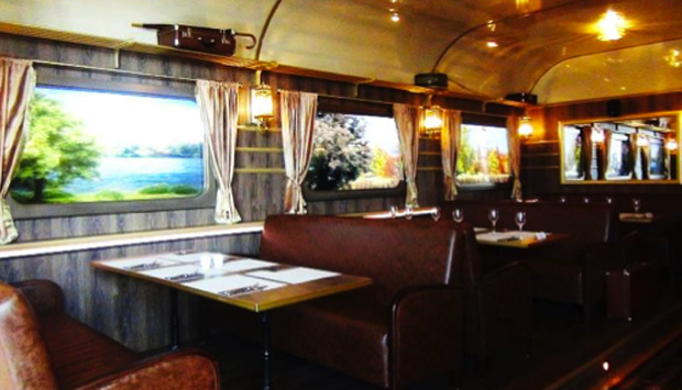 Il vagone ristorante di un treno d’antan della ferrovia Transiberiana dai cui finestrini scorrono paesaggi e scritte in sovrimpressione che descrivono il territorio di una sterminata nazione: è stato l’originale allestimento pensato dalla Russia per il suo spazio gastronomico all’Expo del 2015.