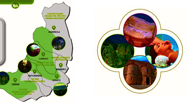 I centri coinvolti sono “Agnana Calabra con le sue terme salsoiodiche; Antonimina che vanta l’importante stabilimento termale delle acque sante; Canolo conosciuta per il massiccio Dolomiti del Sud e le Grotte di Zagaria; Ciminà con l’imponente Tre Pizzi; Gerace, caratteristico borgo medievale e città delle cento chiese; Mammola con le cascate Salino ed i suoi antichi mulini”.