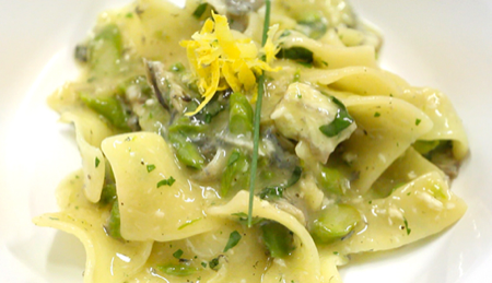 Taccones con sugo di anguilla e asparagi selvatici: la ricetta