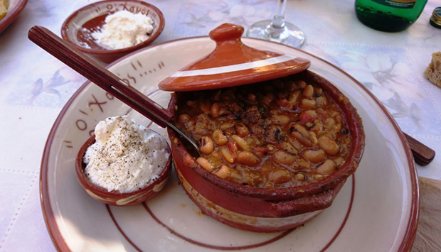 Meritano il viaggio i clamorosi Mavromatika con pasta, ovvero i fagioli dall’occhio immersi in un superlativo sugo rosso cui viene aggiunta una sorta di pastina chiamata Kritharaki, una vecchia ricetta della nonna Eleftheria che rappresenta un vero patrimonio dell’umanità, con quella sua dolcezza antica che commuove.