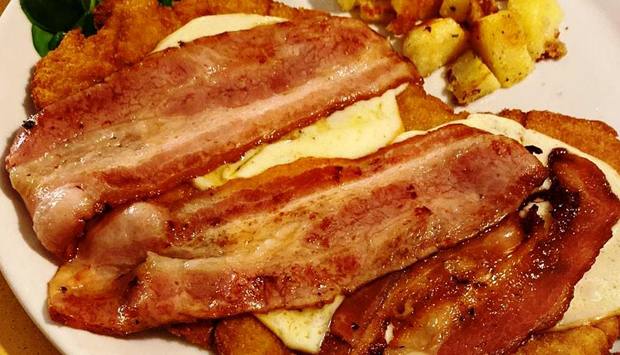 I secondi piatti si chiudono con la Cotoletta di generose dimensioni condita in quattro declinazioni: Classica (“la più famosa, l’orecchio di elefante, accompagnata da patatine al forno”), Lussuria (con crema di zola e prosciutto crudo, accompagnata da patatine al forno), Gola (con bacon e scamorza affumicata, accompagnata da patatine al forno), Invidia (con radicchio e crema di taleggio accompagnata da patatine al forno).