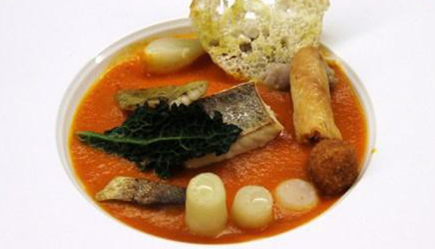 Il piatto è pensato infatti come una rilettura dell’antica usanza di utilizzare i pesci del lago di Como in zuppa (il brodetto), talvolta accompagnati dalla polenta; in questo caso si prevede l’utilizzo del pesce di lago (luccio, bottatrice, lavarello e salmerino, in base alla stagionalità ed all’esito della giornata di pesca) con il coinvolgimento “dell’inimitabile pan de Comm, bianchissimo, croccante e leggero”, un sugo di pomodori di Pachino, una purea di fagioli Borlotti, delle foglie di cavolo nero, un paio di cipolline di Brunate, bianche e dal profumo intenso e fragrante, e qualche assaggio della “biancona”, la patata bianca di Como, introdotta sul Lario nel 1800 dagli Austriaci, poi quasi scomparsa ed oggi oggetto di un attento recupero. L’olio extra vergine d’oliva utilizzato è prodotto a Perledo, sulle sponde del Lago di Como. Tocco aromatico, la presenza della segrigiola, pianta perenne che cresce spontanea nelle zone rocciose delle nostre prealpi, e dell’alloro, che si trova quasi ovunque, lungo le sponde del Lario.